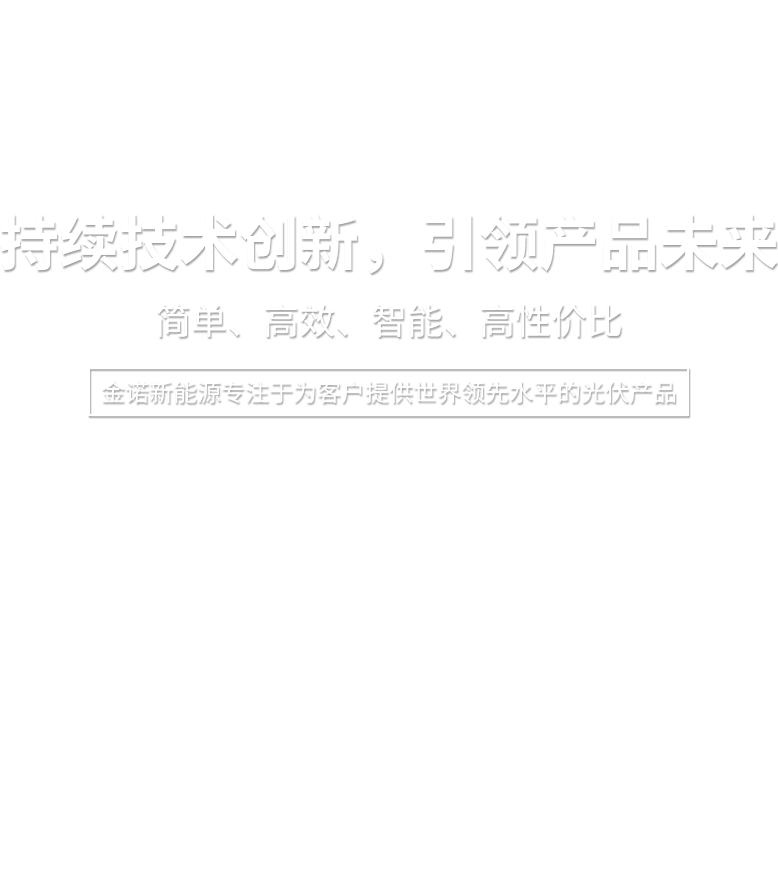 金諾新能源專注于為客戶提供世界領(lǐng)先水平的光伏產(chǎn)品,大力實(shí)施科技創(chuàng)新。我們秉持“品質(zhì)為先,服務(wù)全球”的理念,為客戶創(chuàng)造更高價(jià)值,并與您分享世界綠色能源在陽光下的成長(zhǎng)喜悅!